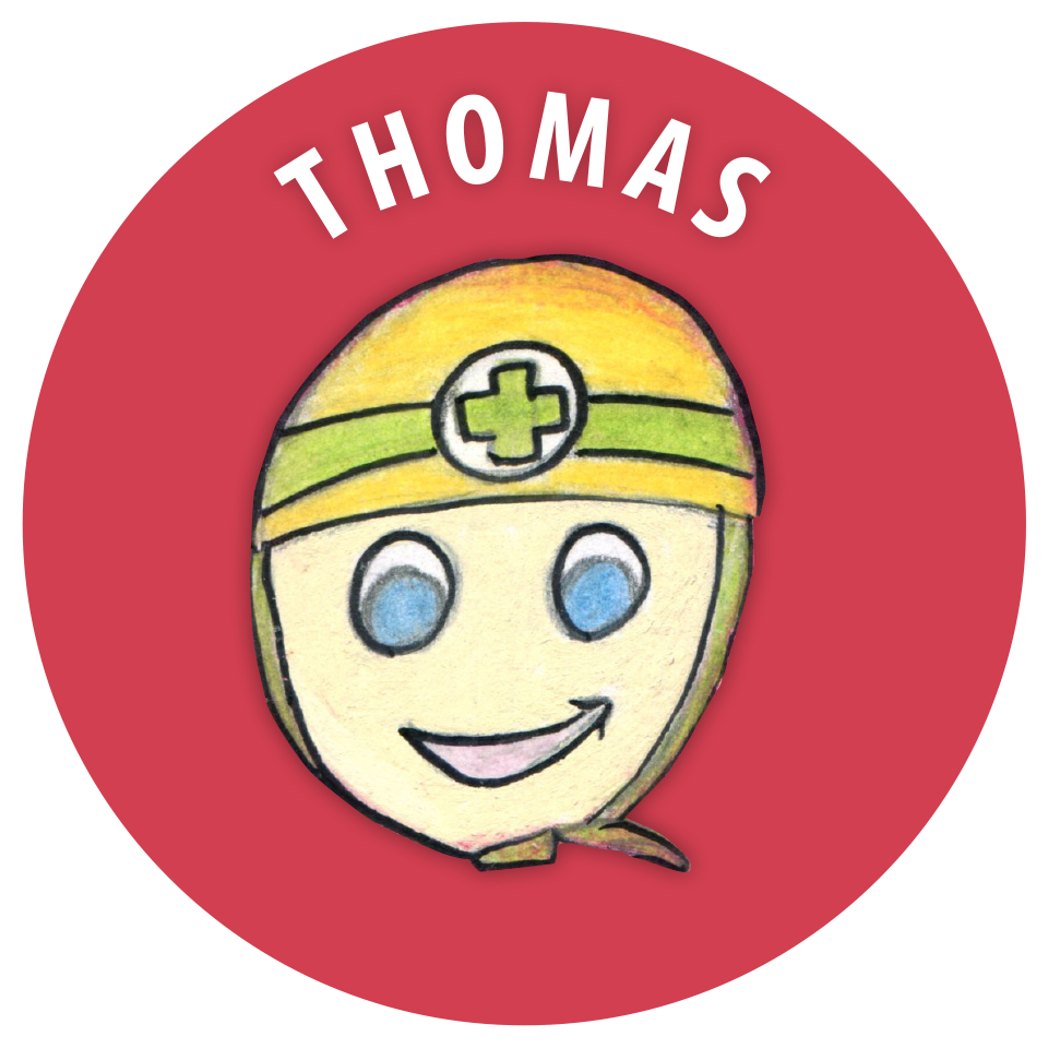 Thomas is the SAFETY guy! He helps keep you safe when he tells you whether it’s safe to jump across that brook or when to cross the street. Find out more about him ->